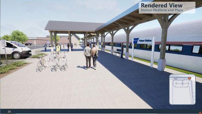 See MassDOT’s conceptual design for the Palmer Amtrak station in this video of the meeting held at PHS on Tuesday evening (10/7/25 at 5:30 p.m.).