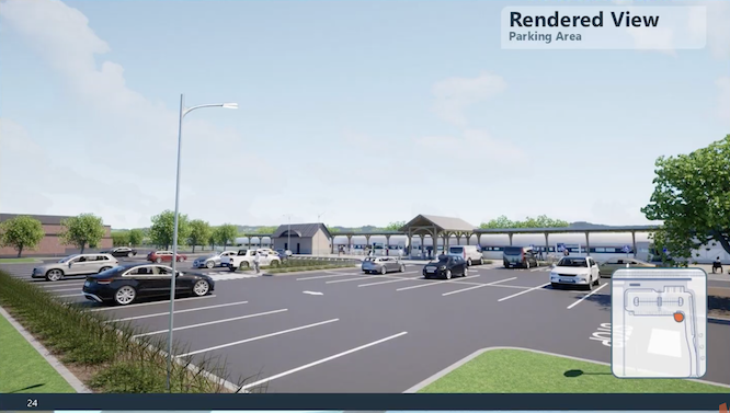 Conceptual design for parking area at Palmer Amtrak station. MassDOT/VHB slide presented on 10/7/25 at PHS public meeting.